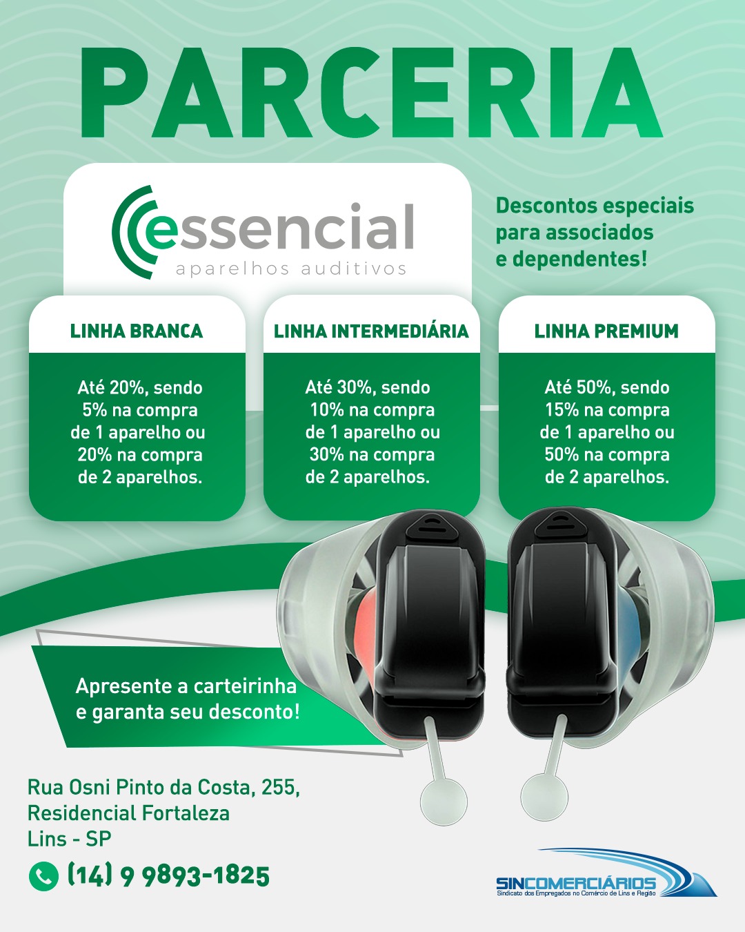 Essa mais nova parceria traz um benefício exclusivo para todos os associados e seus dependentes do Sindicato dos Comerciários de Lins e Região com descontos especiais em aparelhos auditivos de alta qualidade.